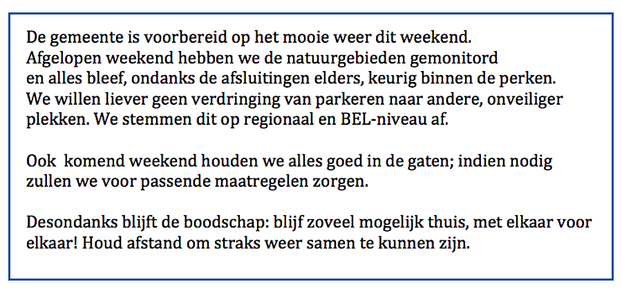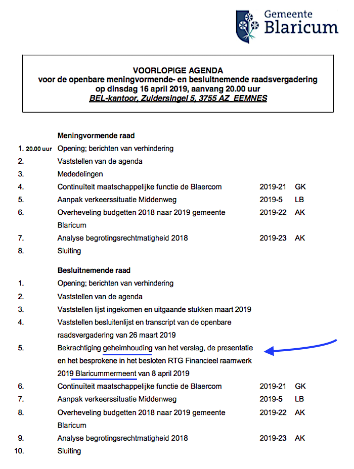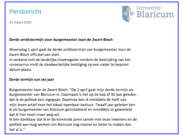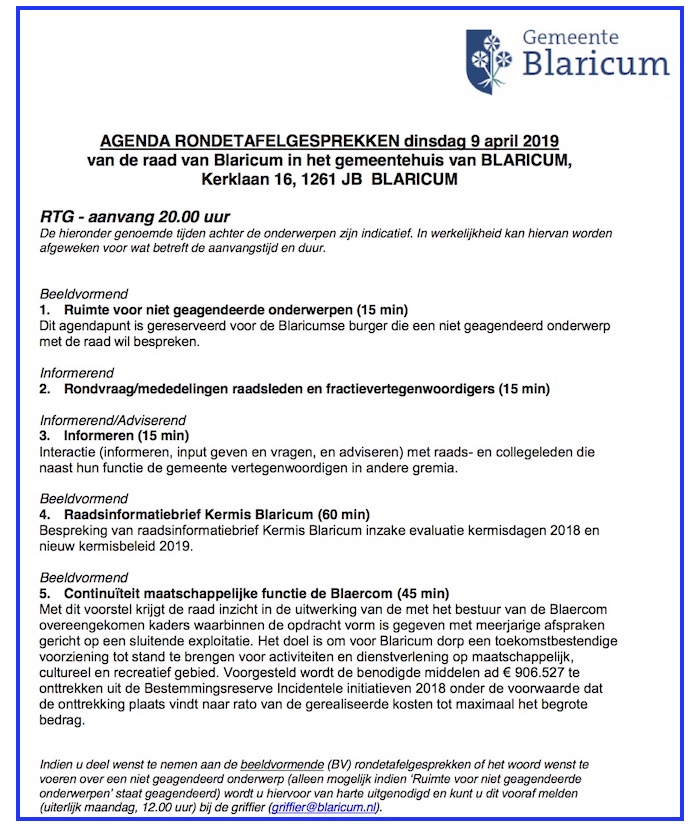 (Even terzijde: bedoelt men met ‘dorpskern’ het centrum van Blaricum-Dorp? Zeg/schrijf dat dan!)