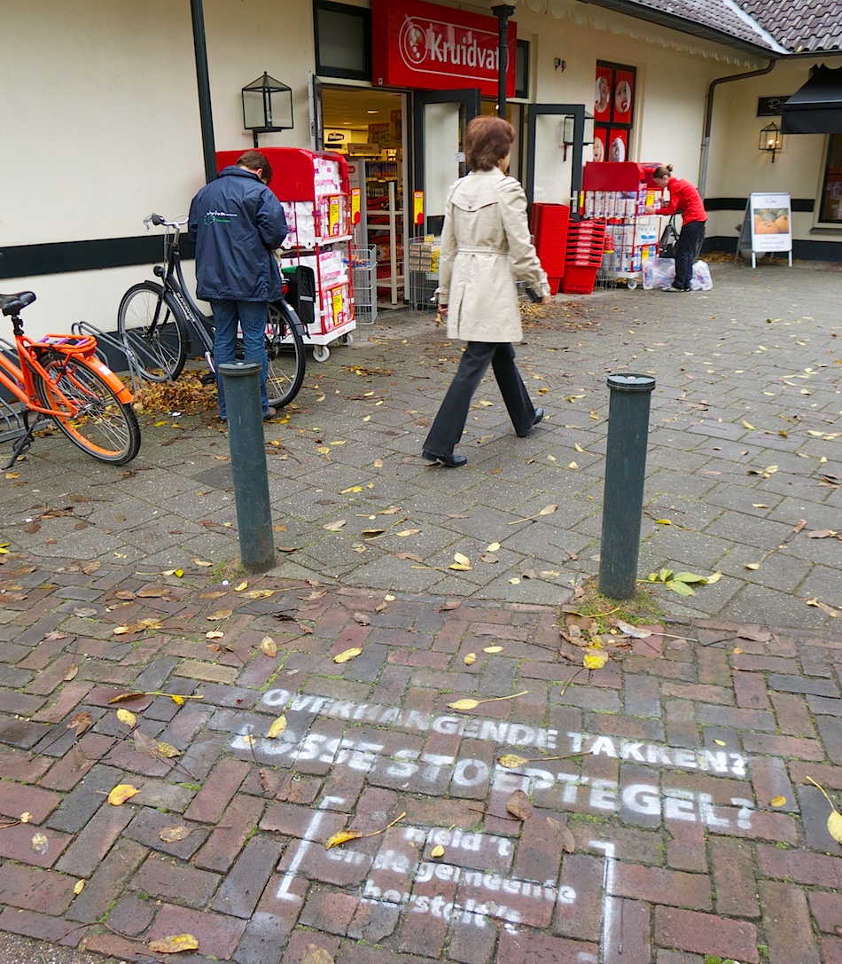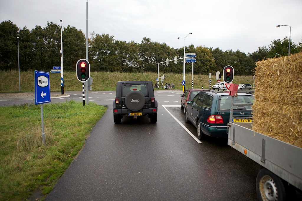 Niet zelden menen weggebruikers (auto’s) die over de Gooyerweg vanaf de Theetuin naar de kruising Blaricummerweg/Randweg-Oost rijden dat die Blaricummerweg tweebaans-eenrichtingverkeer is en dat het verkeer richting Huizen zich op de linkerrijstrook kan opstellen. Oorzaken zijn de onvoldoende/onduidelijke wegaanduidingen én het verkeerslicht dat in de linkerberm staat. De Jeep-rijder stelde zich vriendelijk, leerzaam en zelfcorrigerend op, zodat dit keer alles goed kwam.