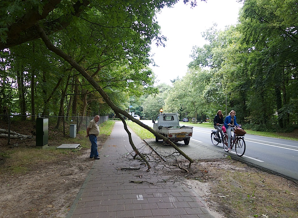 15:14 uur: Prins Hendriklaan – compleet dode tak van Amerikaanse eik, inmiddels opgeruimd.