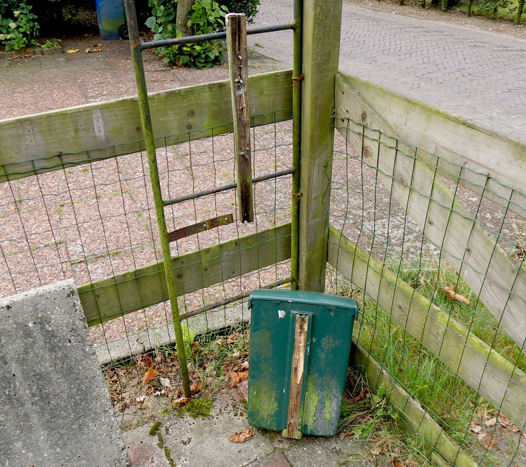 Afgelopen nacht rond 02.00 uur is bij Oog de brievenbus (aan de binnenkant van het tuinhek) losgetrapt/-geslagen en meegenomen. Twee politie-bikers die om 02.20 uur van het voorval kennis namen, brachten enkele minuten later de bus terug – daarvoor dank. Oog wenst de dader een heftige kater toe en hoopt met vele anderen dat hij en zijn soortgenoten wegblijven.