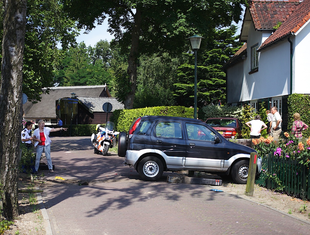 Op de parkeerplaats van AH aan de Burg. Heerschopweg rijdt een rode Volvo 940 achteruit en tikt daarbij een VW Polo aan. Door het geroep van omstanders (‘stop!’) raakt de Volvo-bestuurder volgens ooggetuigen in paniek en trapt hij het gaspedaal vol in (bedoeld was de rem?). De auto schiet naar voren, schuift de Daihatsu waar hij naast stond geparkeerd over heg en palen de rijbaan op en de tegenovergelegen tuin in. De Volvo schiet zelf ook de parkeerplaats af en komt in de naast gelegen tuin met de neus op het terras tot stilstand. Geen letsel, wel schrik en stevige materiële schade aan auto’s en diverse heggen, tuinhekken en straatmeubilair.