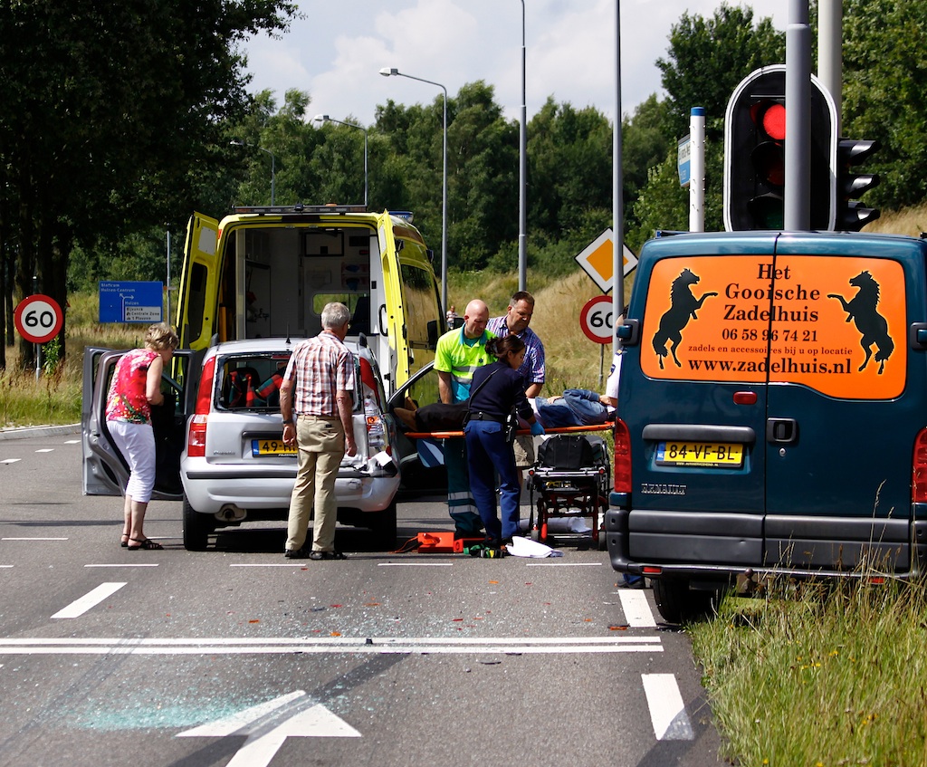 13:37 uur: Randweg-Oost/Blaricummerweg; kopstaart-aanrijding. Een persoon met nekklachten in ambu naar ziekenhuis.