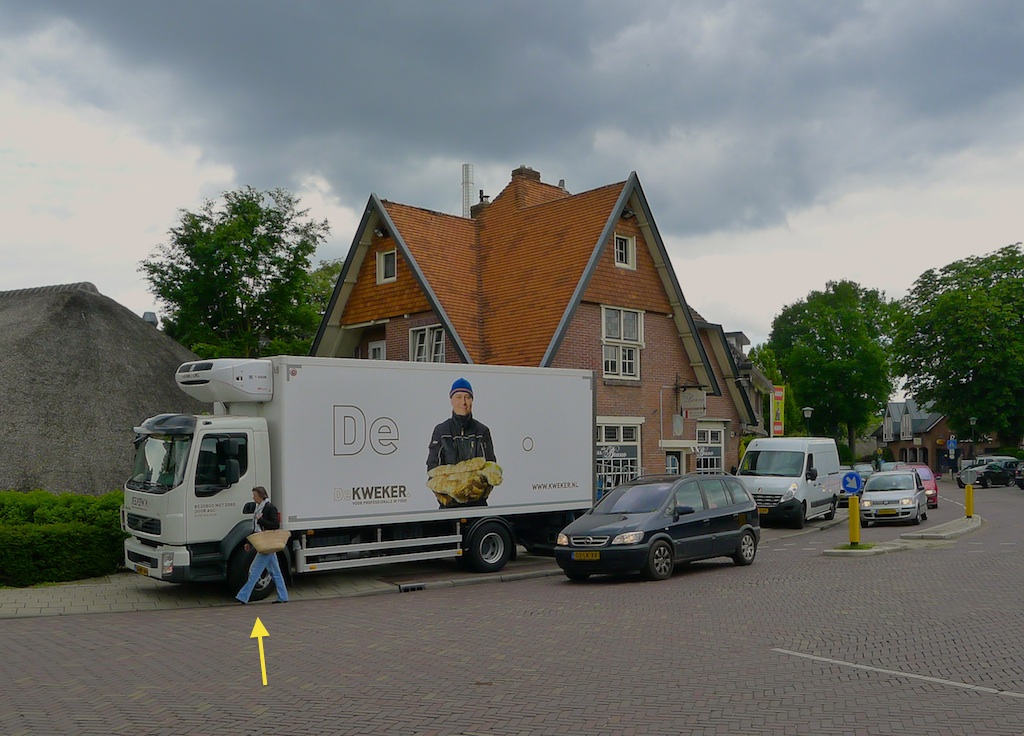 De tweede foto geeft ook een oplossing aan: de wasman zet zijn vrachtwagen niet zo dicht mogelijk bij zijn plaats van bestemming (Bruno), maar net even iets verder. Waardoor de lijnbus er zonder problemen langs kan en voetgangers niet de rijbaan op worden gedwongen, maar net aan de veilige kant van de vrachtwagen door kunnen lopen (derde foto). Blijft niet fraai, maar beter dan voetgangers noodgedwongen op de rijbaan samen met allerlei gemotoriseerd verkeer dat doorgaans met veel meer dan 30 km/uur de bocht door komt stuiven.
