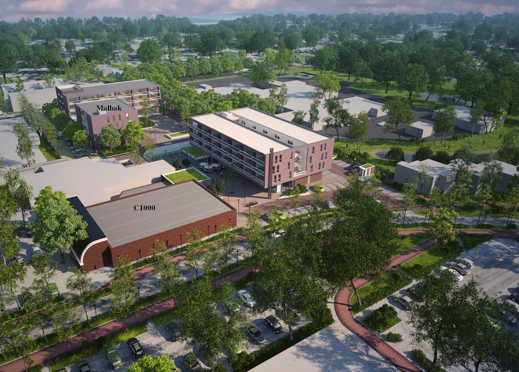 Tekentafel-impressie van het Bijvanck-centrum – met in het midden de verbouw/nieuwbouw (winkels plus 42 appartementen) van De Balken. Moet 2013 klaar zijn.