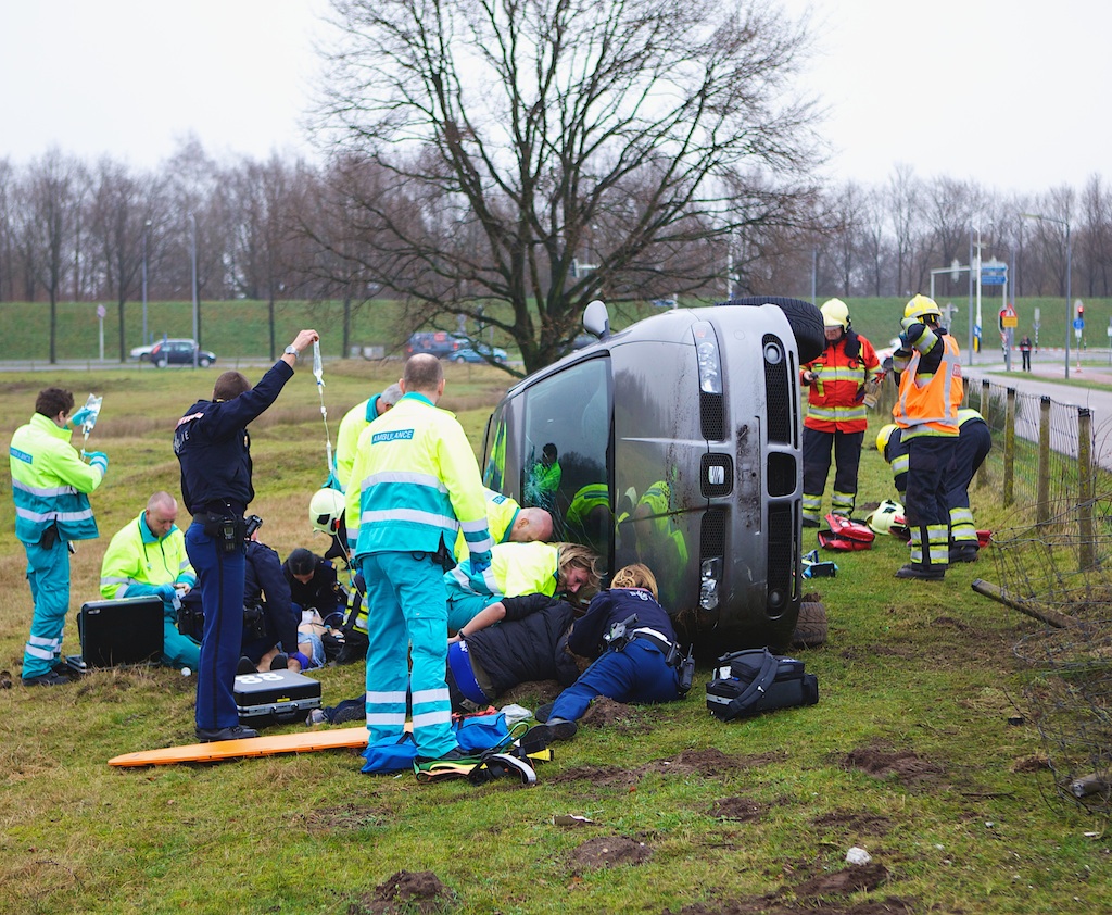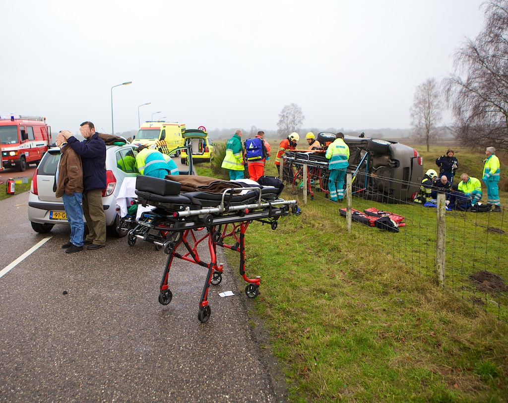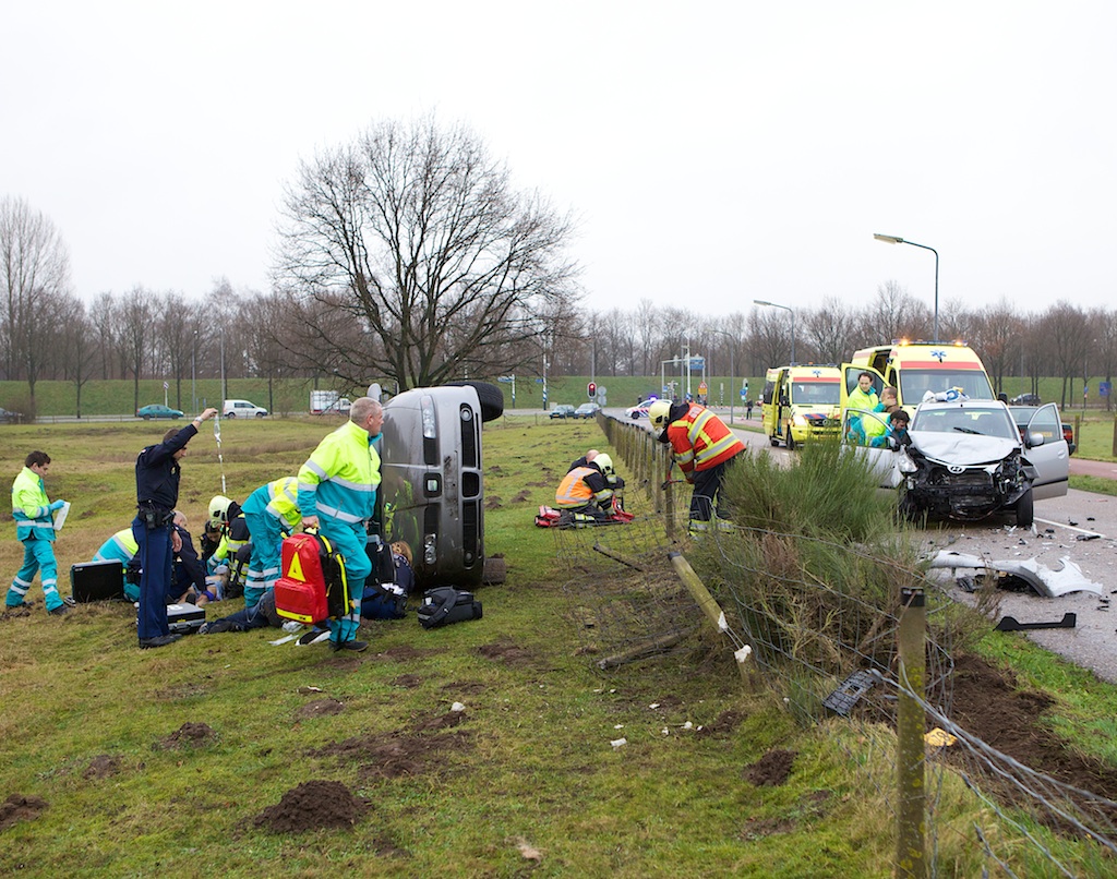 Om 15:30 uur heeft er op de Blaricummerweg een zware aanrijding plaatsgevonden tussen een Seat (uit Dorp komend) en een Hyundai (komende van de Randweg). Volgens ooggetuigen reed de Seat ‘zeer hard’ door de laatste wegversmalling, raakte in een slip, tolde, klapte tegen de Hyundai en sloeg vervolgens over de kop de berm in. In de Seat zaten twee personen, in de Hyundai ook twee. Allen zijn met onbekend (ernstig) letsel naar het ziekenhuis afgevoerd. De hulpdiensten waren massaal ter plaatse – ook de brandweer vanwege ondermeer beknelling en het borgen van de Seat tegen omvallen – de ambu’s werden ondersteund door de arts uit de traumahelikopter die om 15:48 landde.