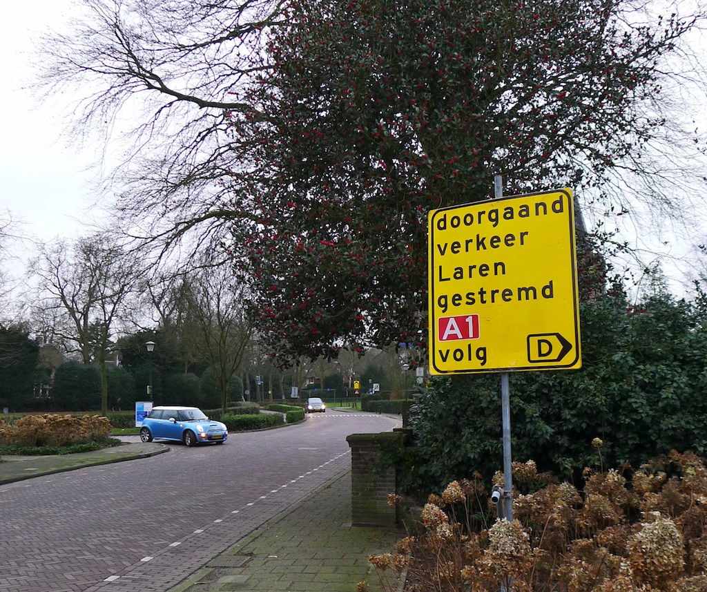 Niet over de Torenlaan via Laren, maar langs Tergooi en dan de A1.