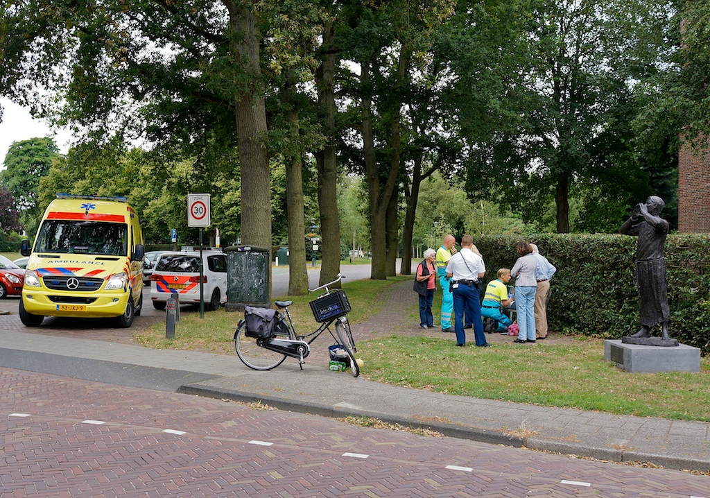 11:57 uur, Torenlaan/Bussummerweg: auto tegen fietsster. Na een klopje en een pleister ging de ambu weer verder – het viel dus mee.