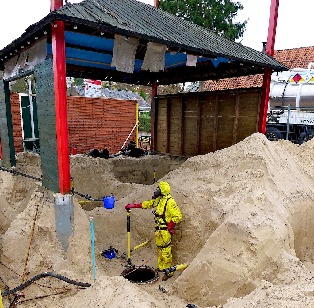 Momenteel wordt bij de Fa. Vos aan de Kruislaan/Middenweg een periodieke (elke 15 jaar) controle uitgevoerd van de brandstoftanks (die onder de hooiberg liggen) en van de bijbehorende infrastructuur.