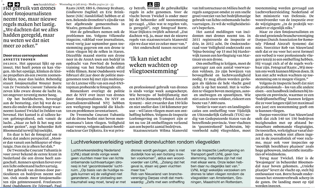 2e update: NRC van 10 juli heeft een interessant artikel over fotgrafen en drones.
