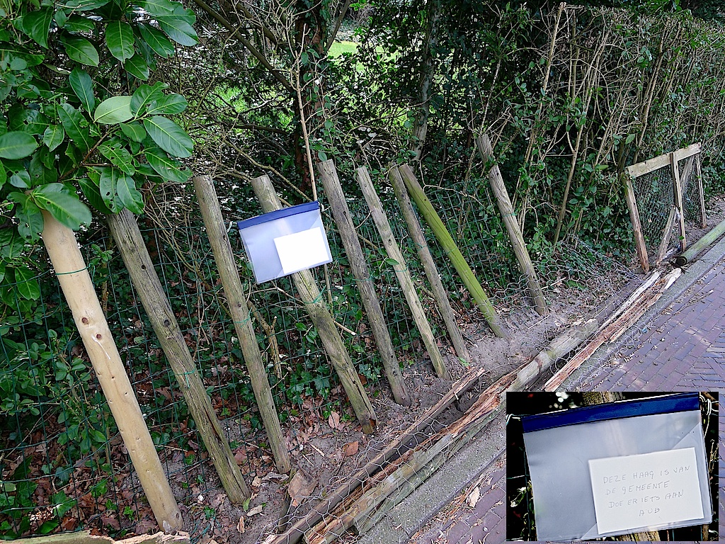 De gemeente eist van perceeleigenaren dat heggen en hagen niet over berm en rijbaan (de openbare ruimte) hangen en dat is zinvol. Even zinvol is het als de gemeente de heggen en hagen die haar eigendom zijn, als een goed huismoeder verzorgt en onderhoudt.