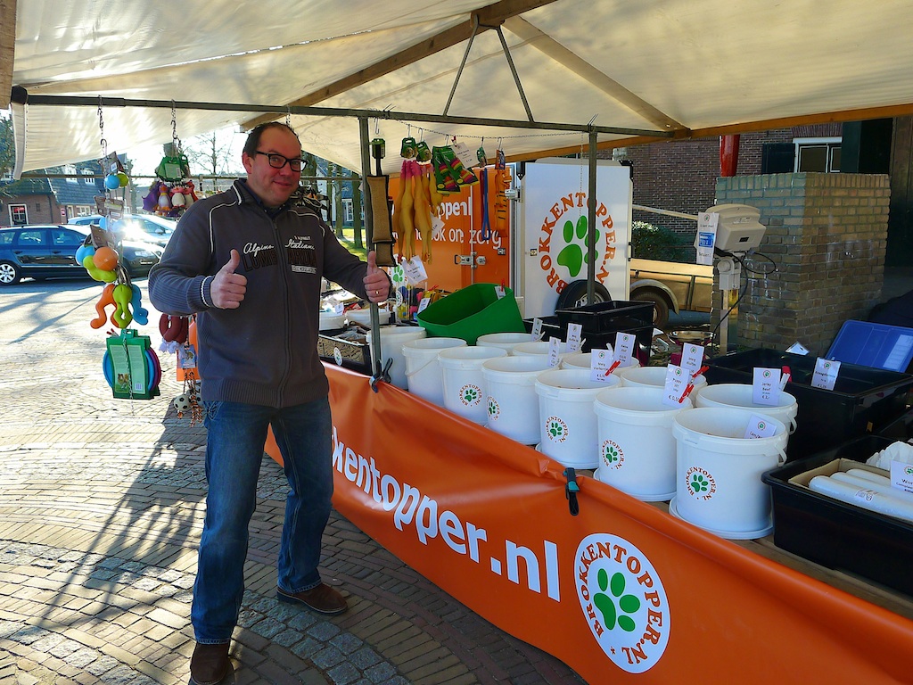Vanaf vandaag staat de Brokkentopper.nl van Marco Vos elke dinsdag bij de muziektent. Met van alles voor hond, kat, hamster, konijn, cavia, vissen en alle andere huisdieren.