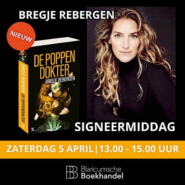 Dorpsgenote en schrijfster Bregje Rebergen hield vanmiddag in Kasteel Groenveld haar nieuwe en tweede thriller De Poppendokter ten doop. Het eerste exemplaar was voor Adeline van Overbeeke (officier van justitie en wat betreft de juridische aspecten een bekwaam adviseur én theebuurvrouw). De schrijfster werd geïnterviewd door haar redacteur, sprak zelf prijzende woorden richting haar ‘ambassadeurs’, hulptroepen en achtergestelde gezinsleden en wijdde zich vervolgens aan een signeersessie voor onder anderen aanwezige dorpsgenoten. Wie niet kon komen, heeft zaterdag a.s. een herkansing: dan is Bregje van 13:00 tot 15:00 uur in de Blaricumsche Boekhandel – mét signeerpen.