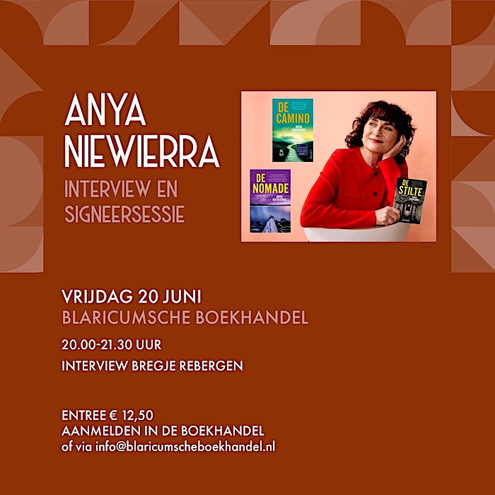 Gisterenavond opende de Blaricumsche Boekhandel de deuren voor een interview plus signeersessie met schrijfster van literaire thrillers Anya Niewierra. Er waren circa 30 belangstellenden.