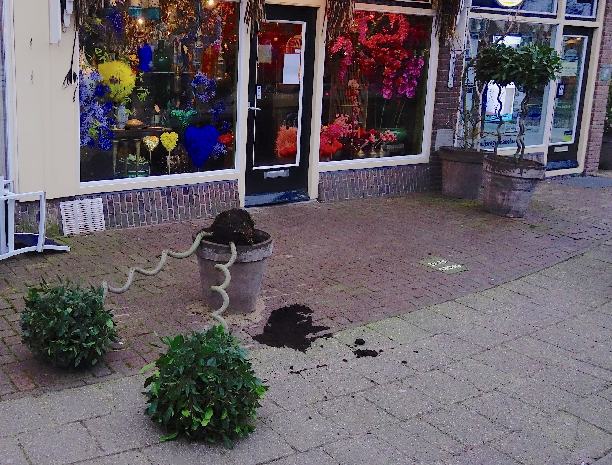 Aan het eind van deze middag heeft een monteur zijn grijze gereedschapskist even naast de container op onze oprit gezet om die later op te komen halen. Geen slimme plek … – maar gebeurd is gebeurd. Toen hij terugkwam om zijn spullen op te halen was de kist verdwenen.