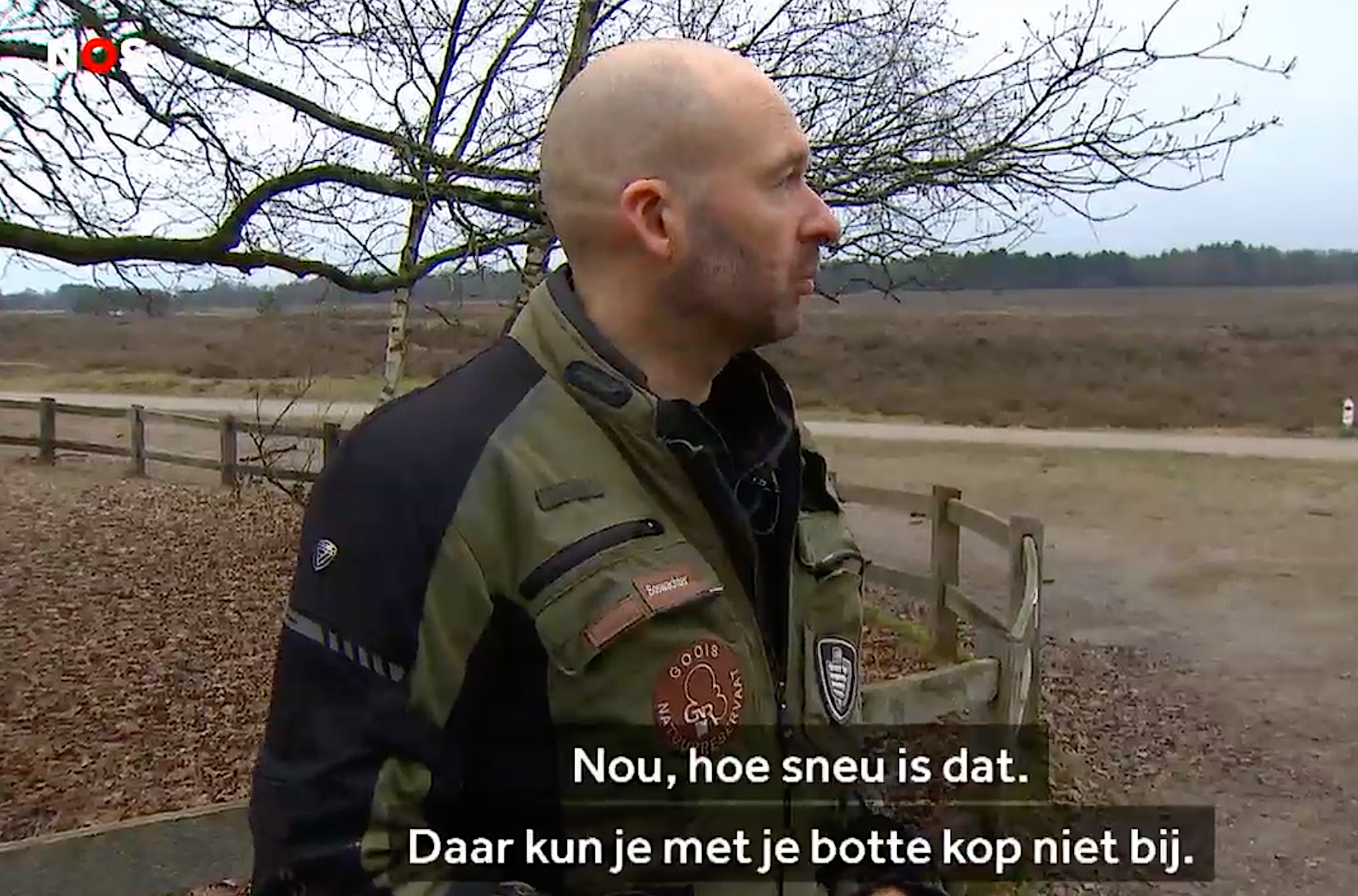 Alie van Enk: ‘Vanmorgen tijdens onze buitenrit zagen wij dat een paar onverantwoordelijke mensen hun hondjes achter de schapen aan lieten jagen op ’t Harde. Een schaap was reeds in het vennetje terecht gekomen. Deze mensen deden niets om het schaap te reden en ook niet om de hondjes te stoppen. Collega-ruiter Paul de Valk (Eemnes) is toen van zijn paard gestapt om het schaap van de verdrinkingsdood te redden. Twee mensen die langs liepen hebben Paul geholpen het loodzware dier uit het water te trekken en te ondersteunen tot het zelf weer kon lopen. Tijdens het hele gedoe kwam de eigenaar van de hondjes nog even aan Paul vragen of het handig zou zijn dat hij even zijn hond zou vasthouden. Ik wist werkelijk niet dat er mensen zijn met zo weinig verstand en dat die ook nog vrij mogen rondlopen.’