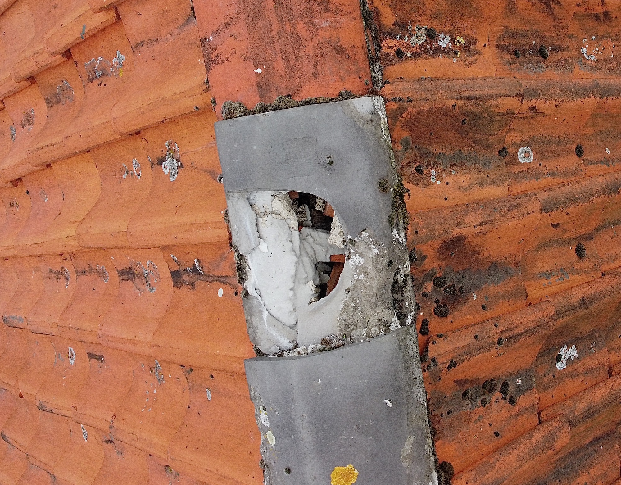 Een foto vanuit de drone liet zien dat er een nokvorst gedeeltelijk was verdwenen.