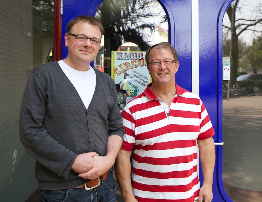 Directeurswisseling bij de OBB: links aantredend directeur Maurice Boonstra (Hilversum, werkte op een kleine basisschool in Almere), rechts John Govers die binnenkort gaat beginnen met ‘lekker niets doen en plezier hebben van m’n zes kleinkinderen.’