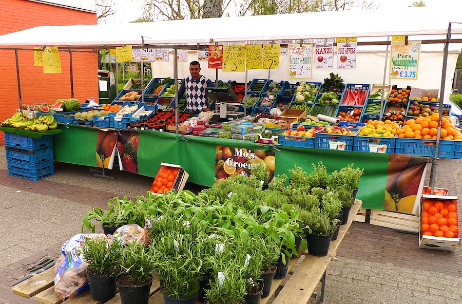 Verse groenten en fruit, bij het winkelcentrum in de Bijvanck; elke zaterdag.
