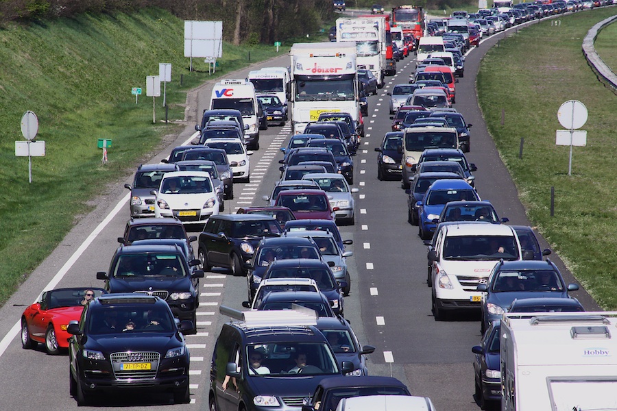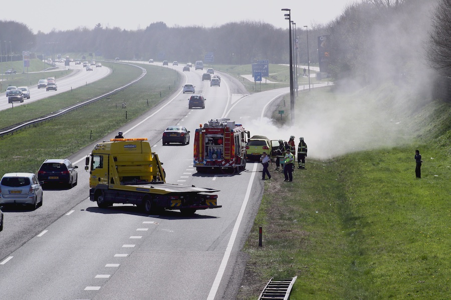 Voertuigbrandje op de A27, gezien vanaf de Stachouwerweg om 15:06 uur, en op de tweede foto de slachtoffers.