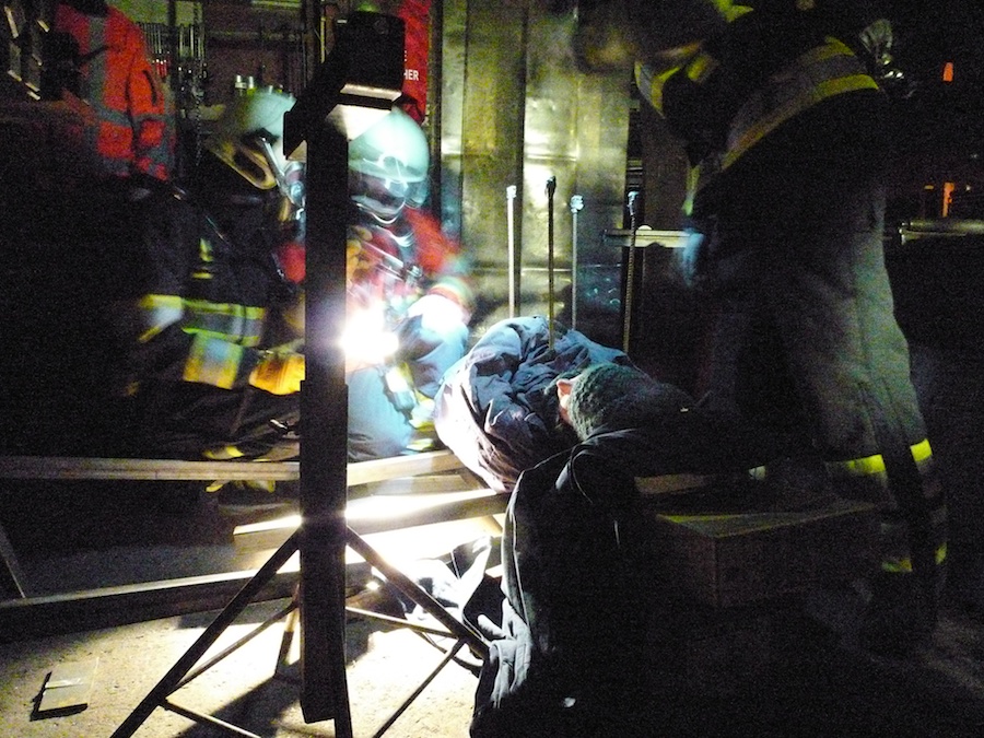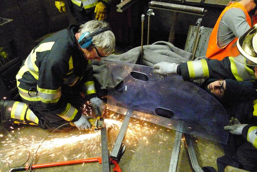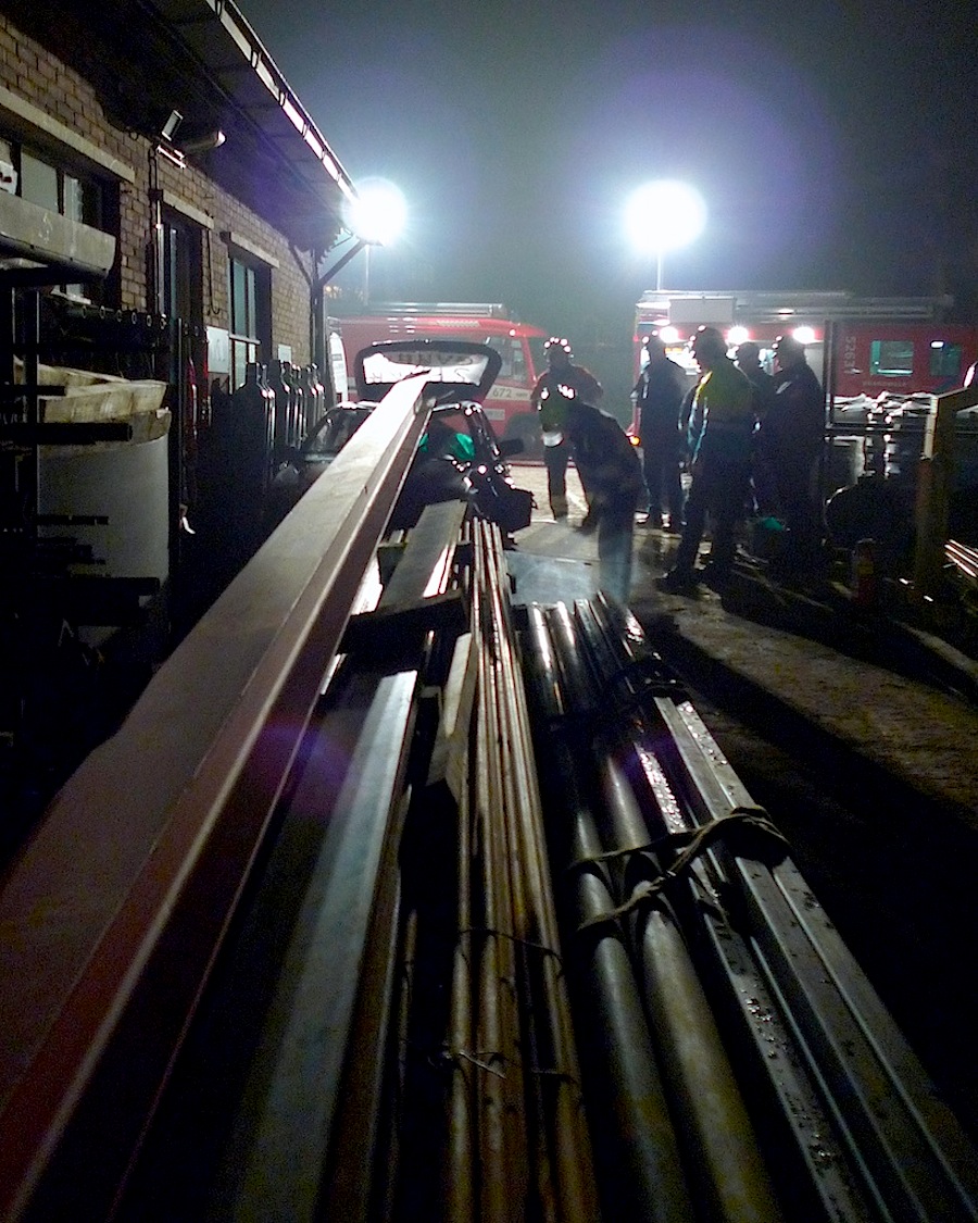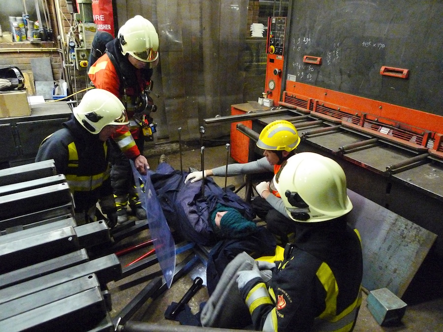 Bij een ernstig bedrijfsongeval is een stagiaire zodanig gevallen dat ze daarbij op meerdere plaatsen door stalen vlechtstaken is doorboord. Oorzaak was een afgevallen balk die op een auto terecht was gekomen. Door de klap schrok de vrouw zo hevig dat ze een brander weggooide en bij haar poging weg te duiken ongelukkig ten val kwam. De brandweer heeft de vrouw gestabiliseerd, uit haar benarde positie bevrijd en voorbereid op medisch transport. Ook de twee inzittenden van de auto zijn door de brandweer in veiligheid gebracht. Een beginnend brandje werd geblust. Alle slachtoffers zijn afgevoerd naar een plaatselijk café, alwaar de brandweer later op de avond kon terugzien op een geslaagde oefening.