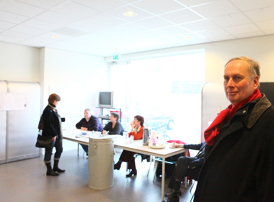 Locoburgemeester/wethouder Rob Posthumus peilt de stemming op stembureau 5 in de Malbak.