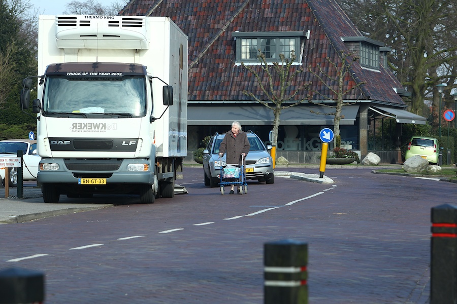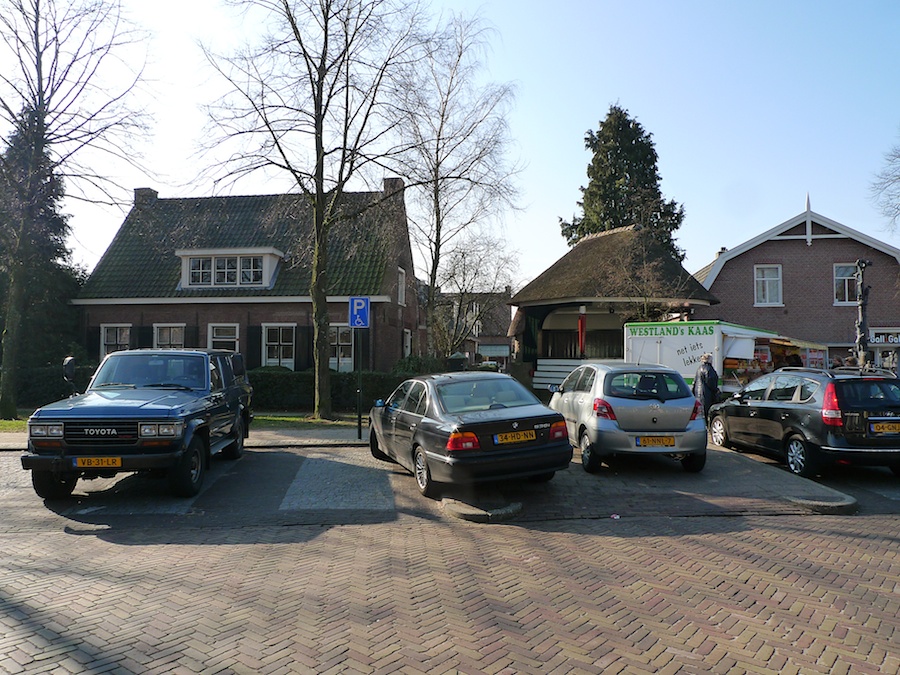 Links van de Toyota is een fijne vrije parkeerplek – maar da’s wel twee, nee, dríe meter extra lopen naar de kaasboer …