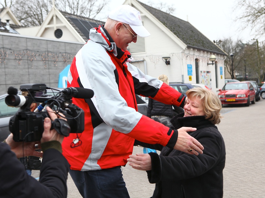 Deze dag is noodzakelijk omdat medisch-statistisch-filosofisch is vastgesteld dat lange mensen qua knuffel ten opzichte van modalen onderbedeeld zijn. Velen weten niet hoe het moet, kunnen er niet bij (…), vinden het eng, enzovoort. HvB-raadslid Rob Bruintjes – maar nu enkel en alleen even als langmens van dienst – verleidde voor de camera’s van RTVNH en Oog enkele dames tot een knuffel van ongekende hoogte … en gezelligheid. (Let op beider trouwringen.)
