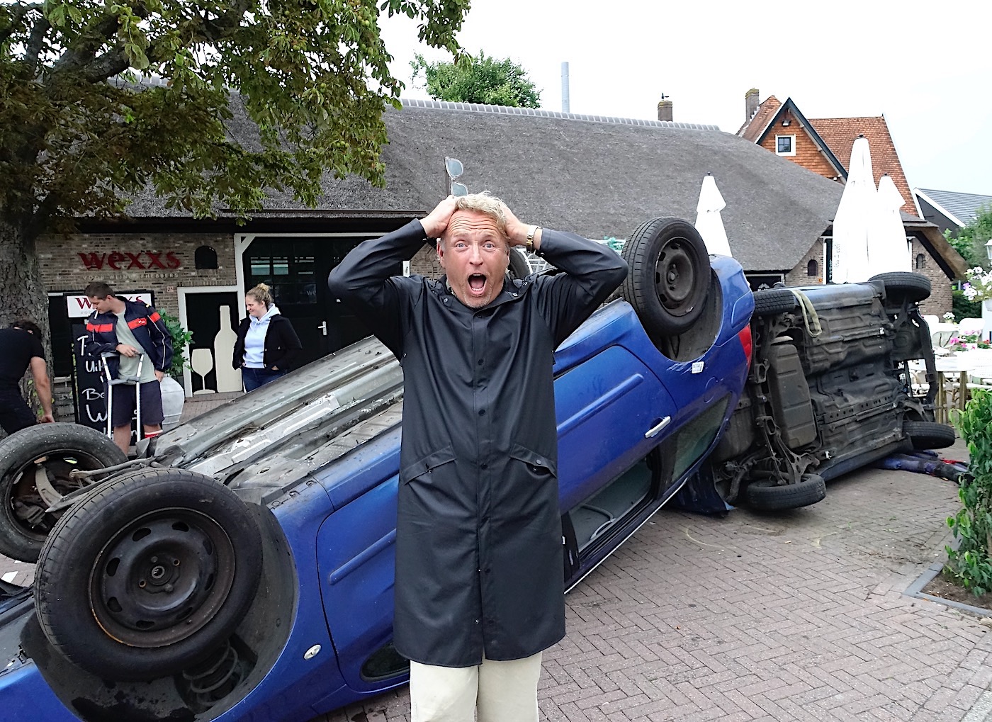 Terwijl Gordon nog bezig was het terras van zijn Blushing op te ruimen, kwamen er twee gecrashte auto’s vlak bij hem terecht. Grote paniek eerst – ook omdat werd dacht dat het de dealer was (die de chocolaatjes kwam brengen). Gordon kwam gauw weer bij zinnen en …