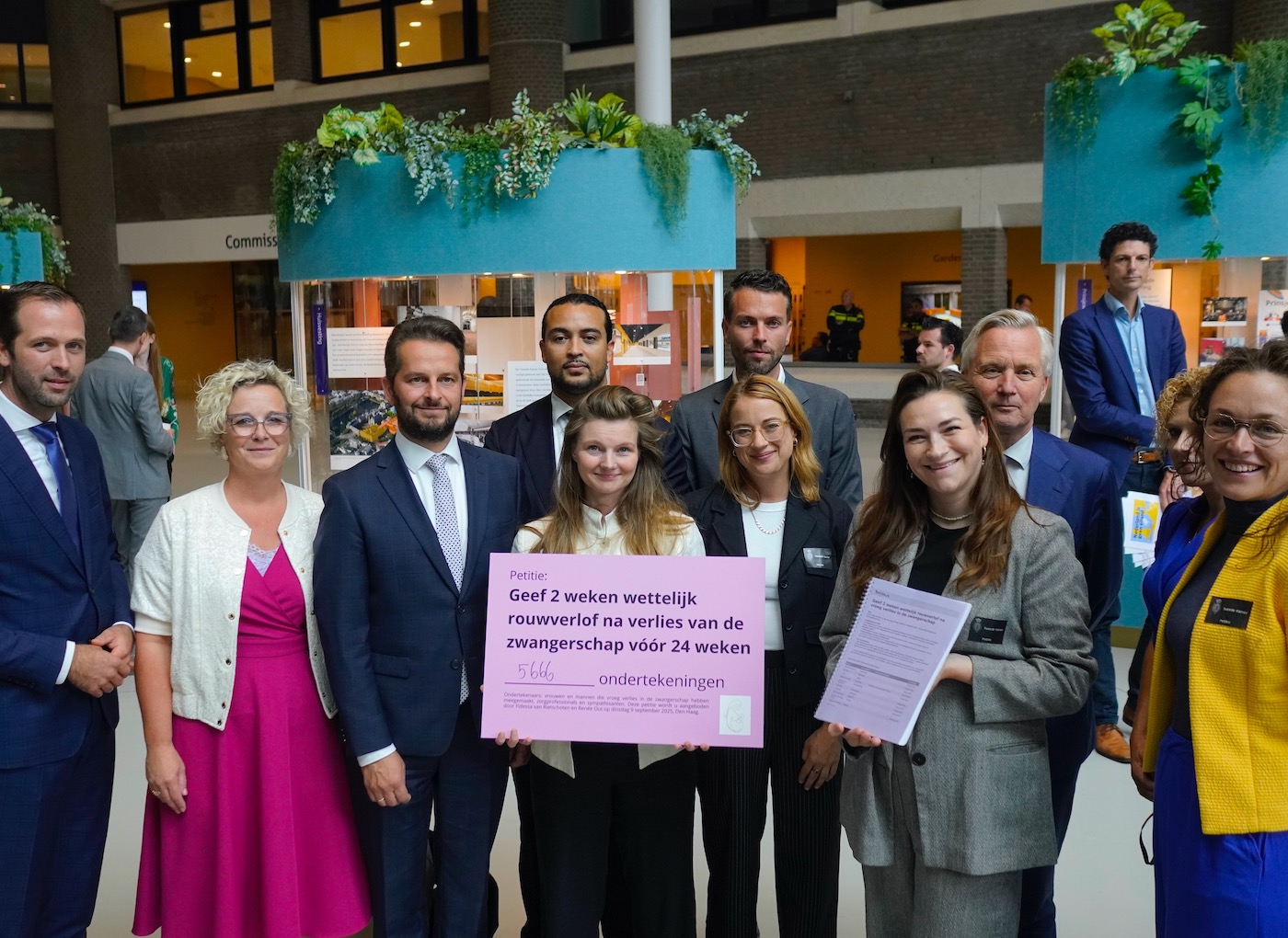 Vanmiddag is in het gebouw van de Tweede Kamer de petitie Geef 2 weken wettelijk rouwverlof na vroeg verlies in de zwangerschap aangeboden aan de Kamercommissie voor Sociale Zaken en Werkgelegenheid. Commissievoorzitter Erik van der Burg nam de petitie – inmiddels bijna 6000 keer ondertekend – in ontvangst van initiatiefneemsters journalist Fidessa van Rietschoten, huisarts Renée Out, Barbara Braak (Verlofhub) en Lian Heinhuis (fractievoorzitter PvdA Amsterdam). Doel van de petitie is te komen tot het recht op wettelijk verlof na een miskraam binnen 24 weken. Inmiddels heeft de gemeente Amsterdam deze regeling tot beleid gemaakt en ook het CDA heeft deze in haar verkiezingsprogramma opgenomen.