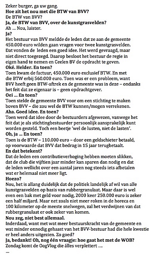- Indien vrijdag a.s. om 12:00 uur niet het gehele BVV-dossier ter beschikking is gekomen, zal op Oog op Blaricum later die dag een op verkregen informatie gebaseerde benadering worden gepubliceerd van het nu onrechtmatig achtergehouden dossiergedeelte.