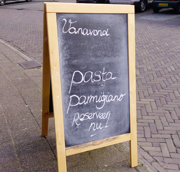 let op het bord buiten op de stoep. Cibo gustoso!’
