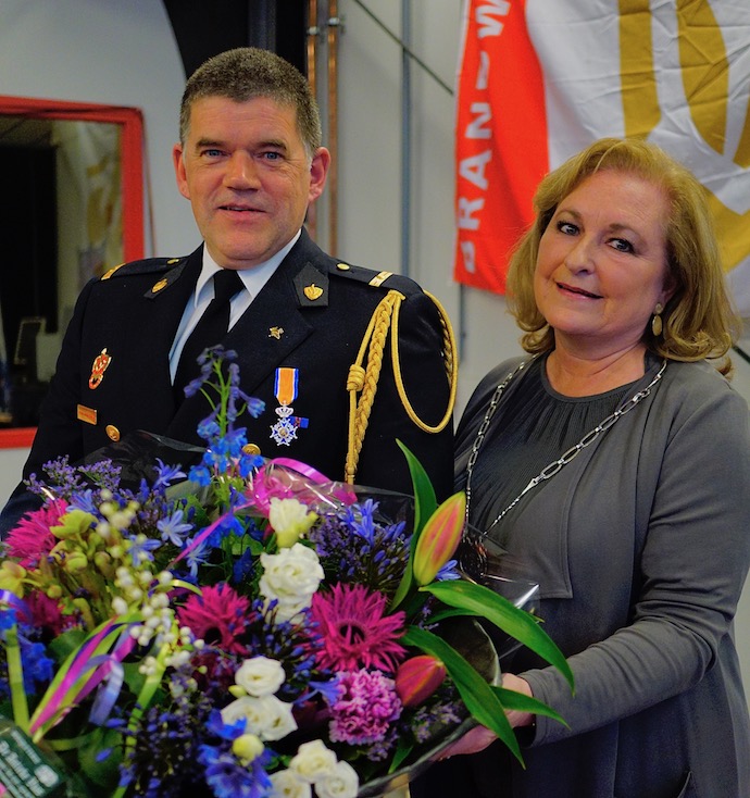 Burgemeester Joan de Zwart-Bloch reikte vanmiddag in de brandweerkazerne een koninklijke onderscheiding uit.