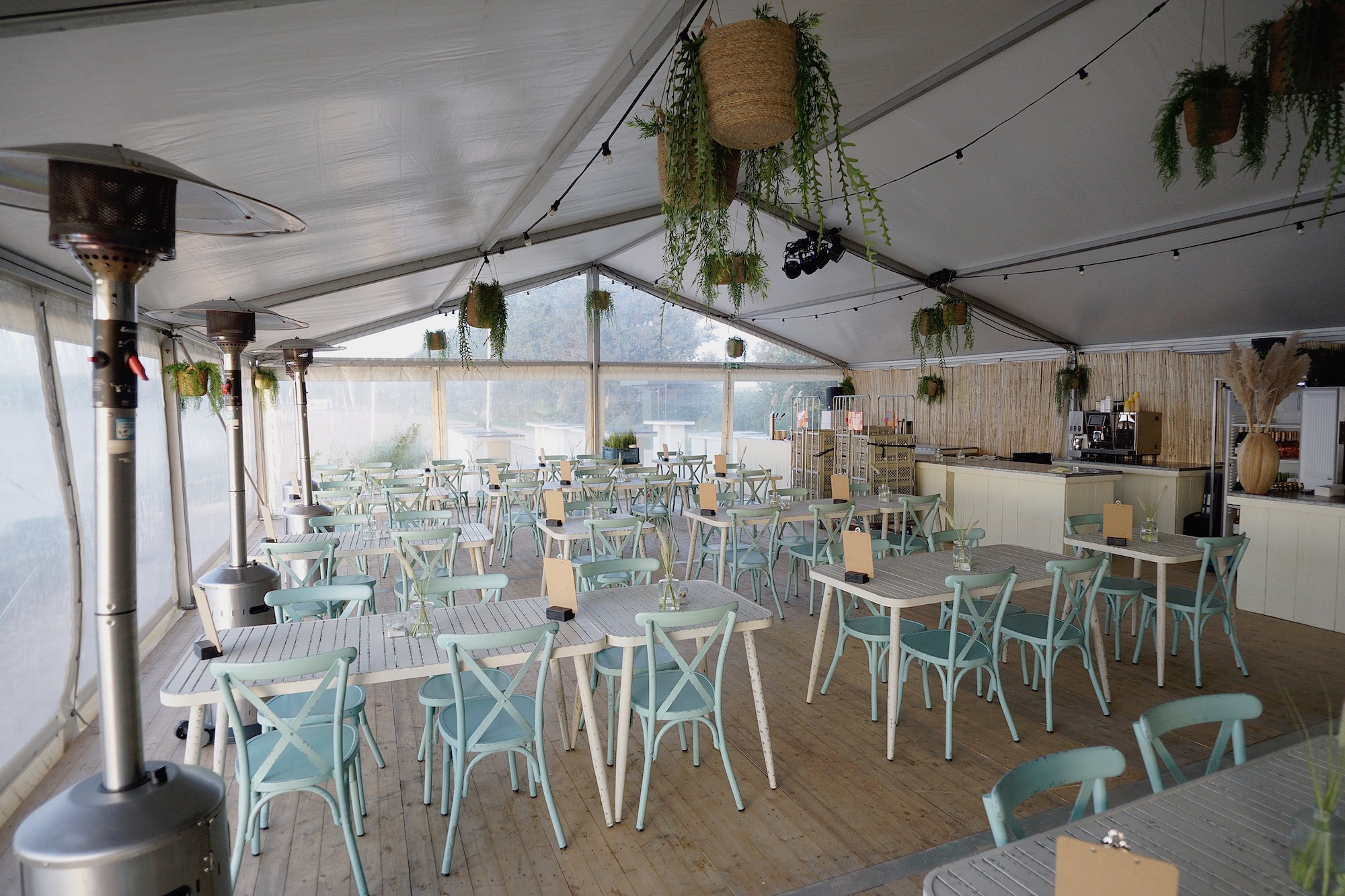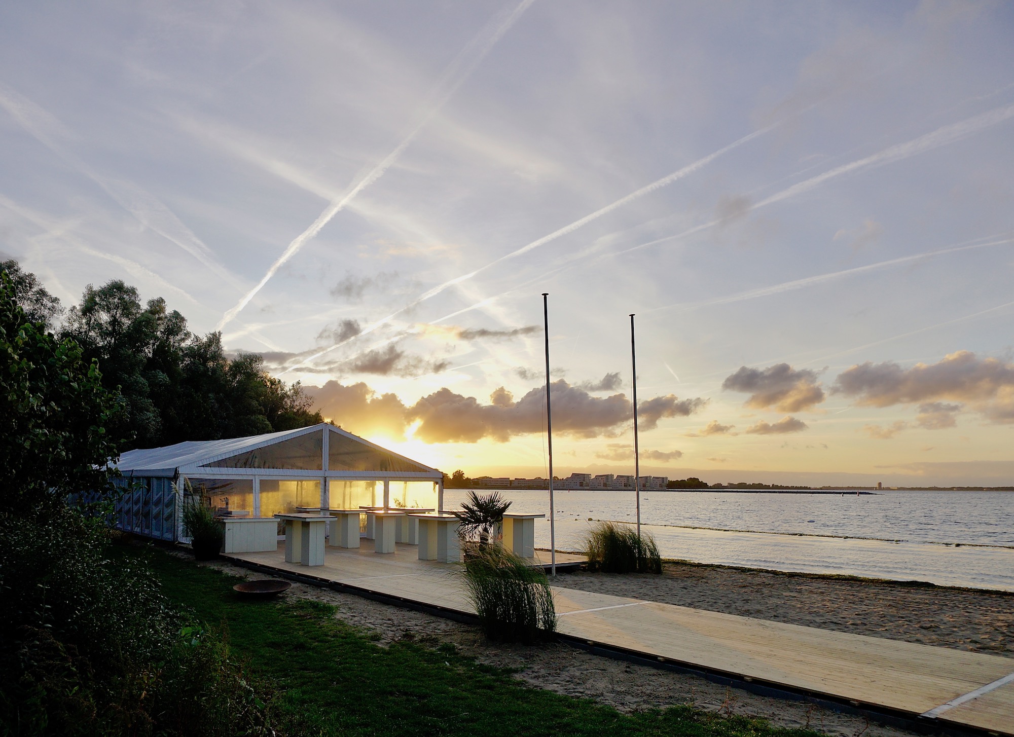 In een mooie, zo nodig verwarmde tent aan de zijkant van het Stichtse Standje, aan de ‘vloedlijn’. Die tent wordt vanochtend nog voorzien van een doorkijkdak, dus dan lijkt het helemaal of men buiten zit. Reserveringen maken (hier) is nog voor een paar avonden mogelijk. Interessant is de Blaricumse Avond op maandag 23 september. Interessant is ook dat er zowel met muziekvolume als lichtkleur rekening wordt gehouden met de buren: vleermuizen. Er is vlakbij voldoende parkeerruimte voor zowel twee- als vierwielers.