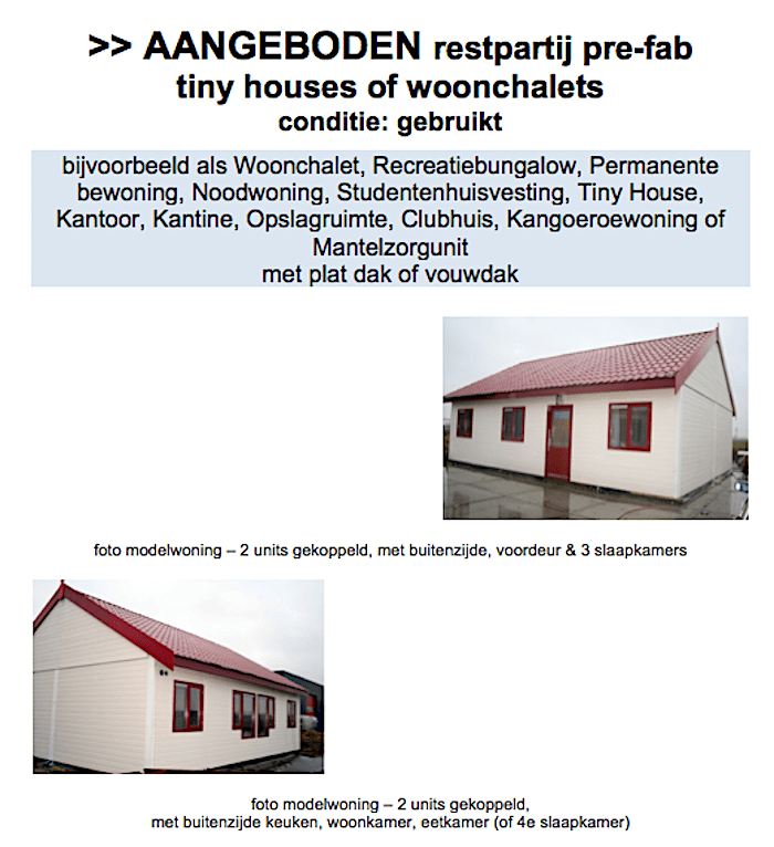 Huizer Gino Joling heeft 10 Tiny-houses te koop. Vraagprijs € 19.000 per stuk. Contacten hierover met de gemeente c.q. wethouder Boersen leverden niets op, met de Brandweer wel. Joling: ‘Ik heb intussen ook wat mensen uit het dorp gesproken en heb een 15-tal locaties waar Tiny-houses geplaatst zouden kunnen worden. Ook heb ik van een particulier al een toezegging om vier van deze huisjes te kunnen plaatsen (binnen vier minuten aanrijtijd naar de kazerne). Morgenochtend heb ik een gesprek met de brandweer. Ook heb ik me aangemeld om op 10 september bij de RTG te zijn en in te spreken.’