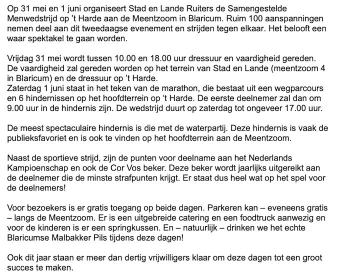 Vandaag en morgen op ’t Harde de Samengestelde Menwedstrijd van Stad en Lande Ruiters.