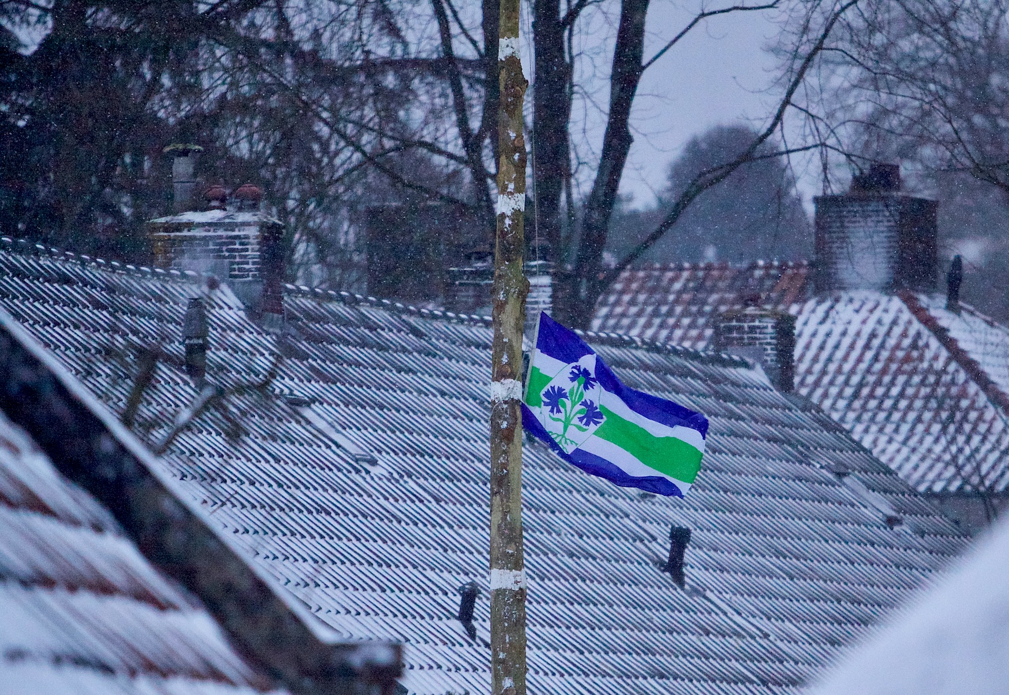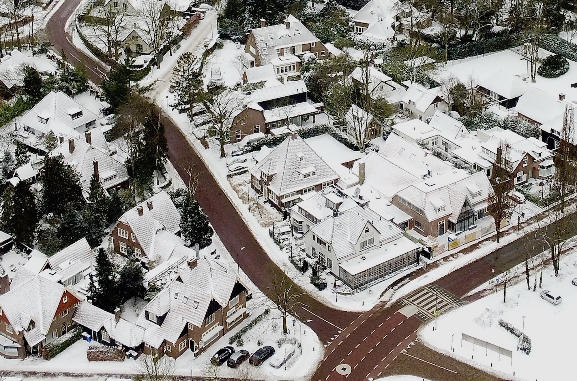 Bij het vanmiddag op verzoek dronefoto’s maken van het gebied dat valt onder de BuurtPreventieVereniging Wakker (globaal tussen Huizerweg, Huizerhoogt, Witzand, Naarderweg) raakte door de kou de accu van de Oog-drone opeens erg leeg. De weg terug naar de startplaats (parkeerterrein tegenover Bellevue) was helaas net te lang – de drone kwam vlakbij in een boom in de berm van de Huizerweg terecht. Op zes meter hoogte. Een tuingereedschap op een stok van 5,5 meter van een aanwonende bracht geen uitkomst.