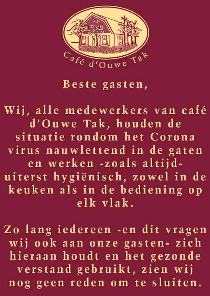 We proberen goed en gezond door deze situatie te komen zonder nare gevolgen voor u en onze medewerkers.