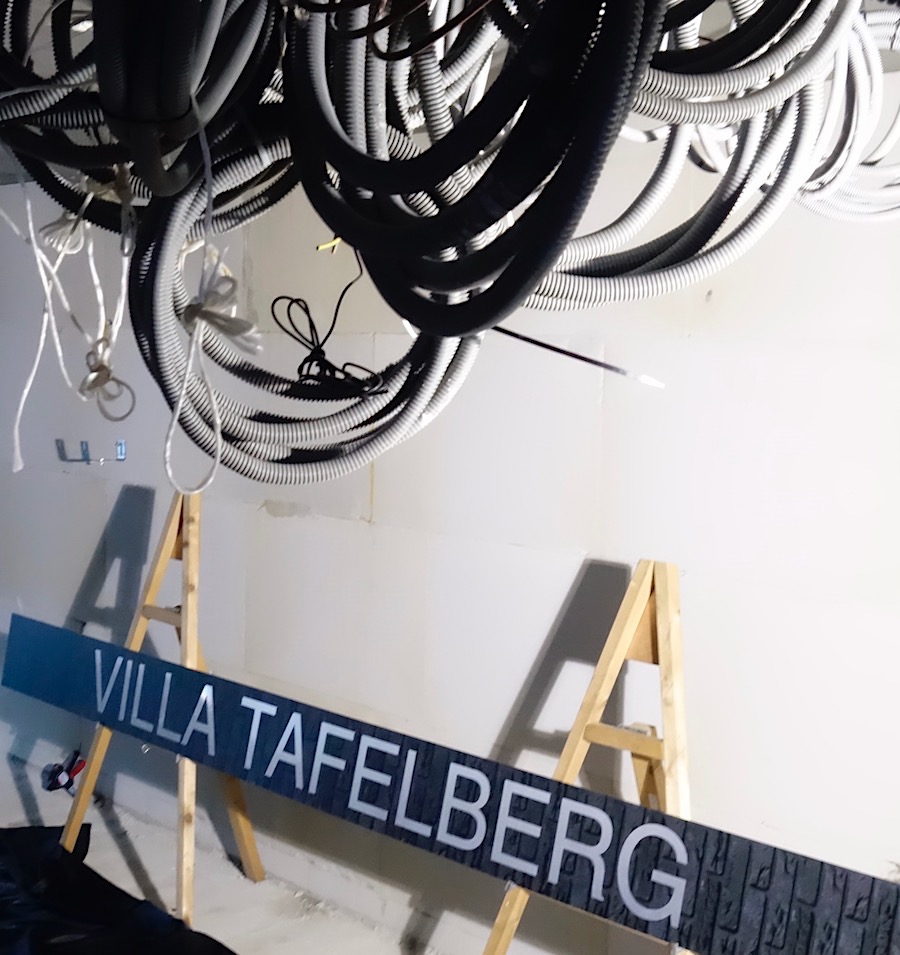 Van de in aanbouw zijnde zorgvilla aan de Prins Hendriklaan is vanmiddag met een woordje, drankje en hapje zowel het bereiken van het hoogste punt gevierd als de naam onthuld. Wethouder Boersen droeg daar met woord en daad aan bij – vanachter een dundoek toverde zij de naam Villa Tafelberg tevoorschijn.