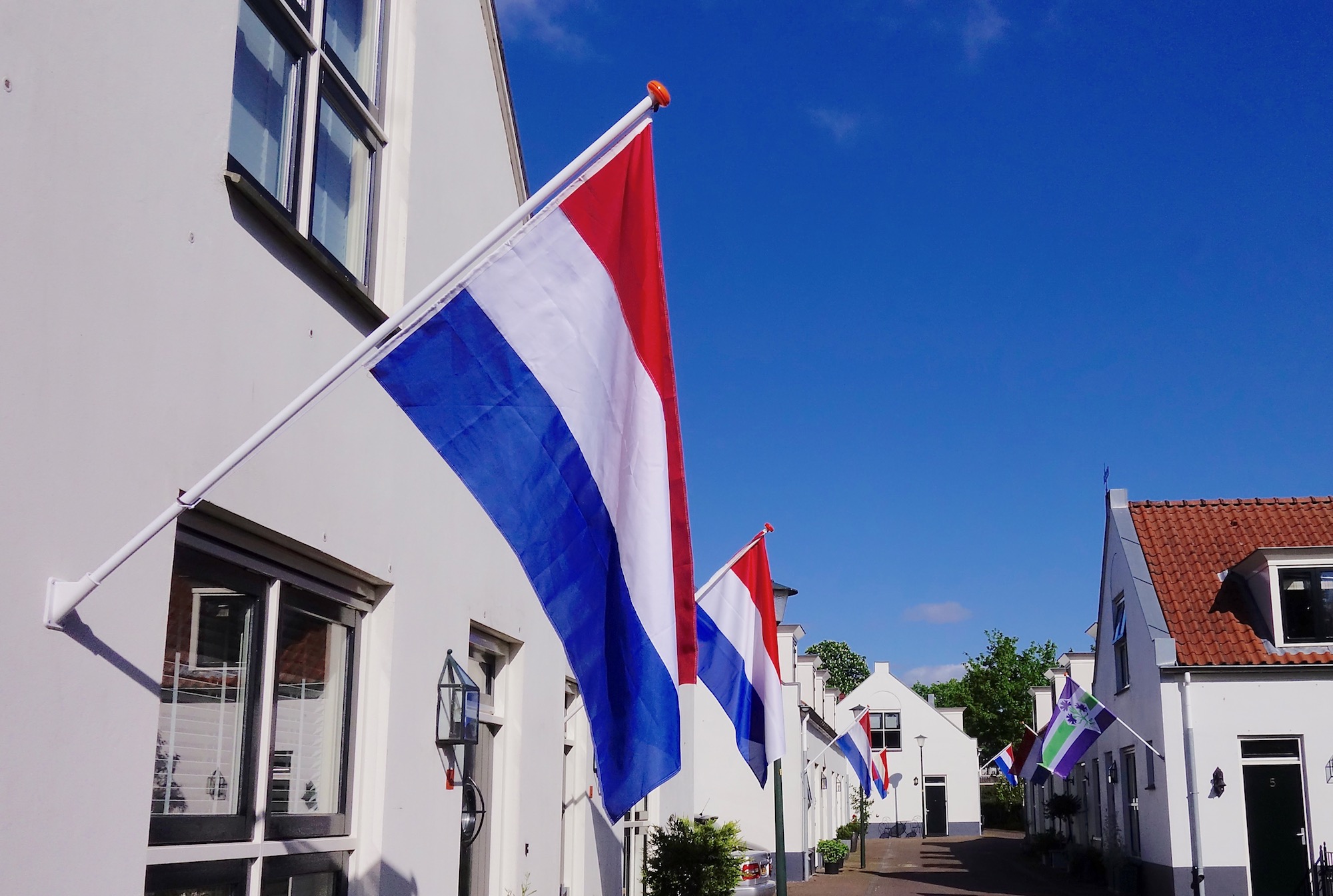 … en voorts laten overal ‘roodwitblauw en schooltas in top’ weten dat daar een geslaagde woont.