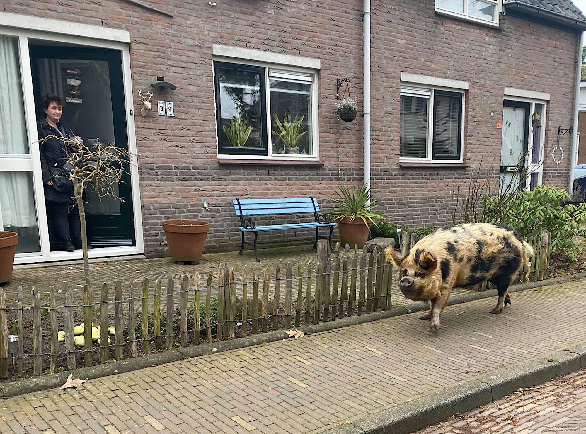 Elaine Rieder kwam vanochtend rond half negen op ‘haar’ Kerkpad‘ een bijzondere passant tegen. Zonder begeleiding.