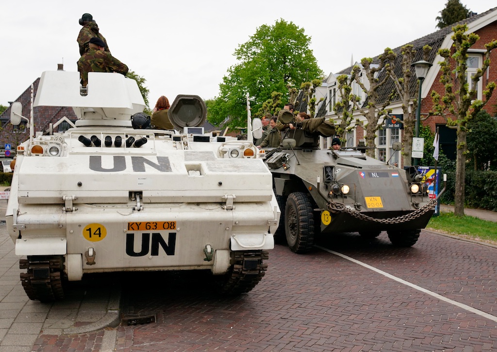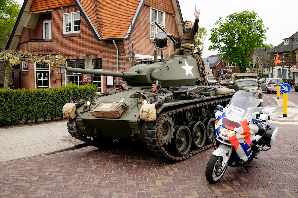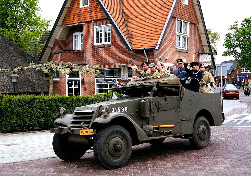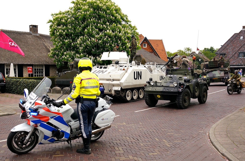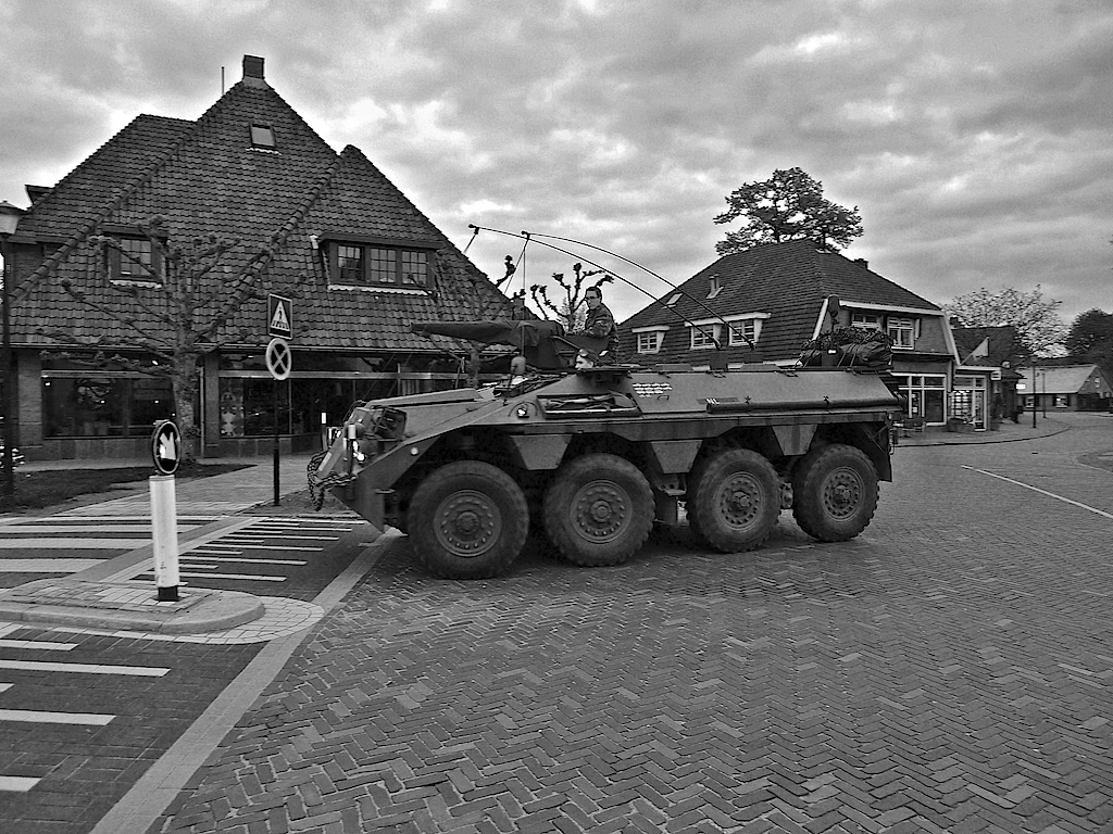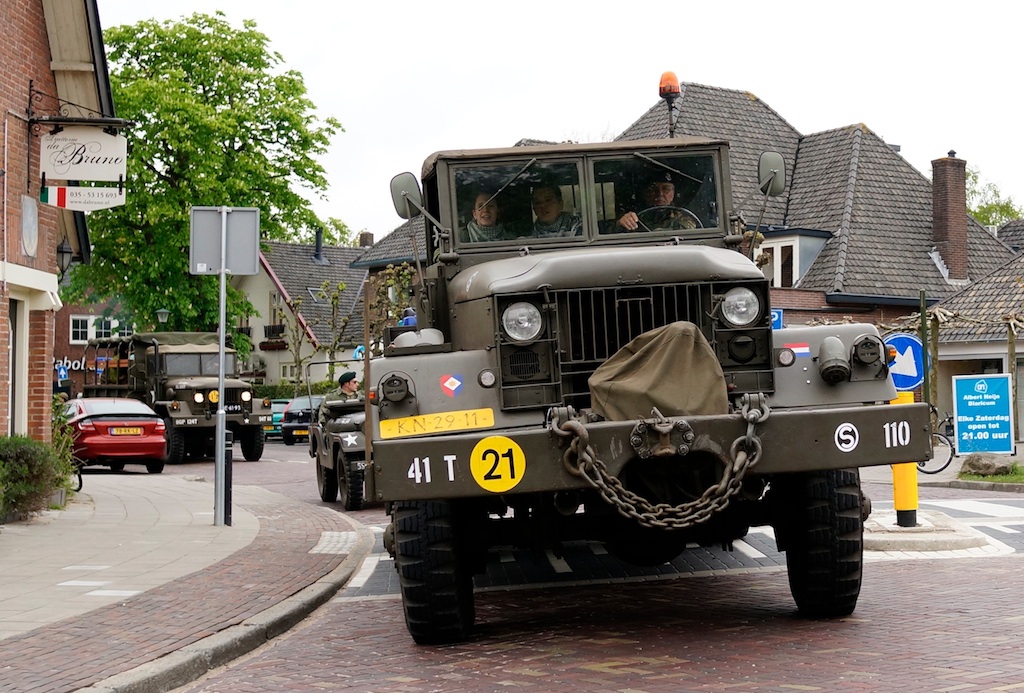 … komt de traditionele Vrijheidstocht georganiseerd door Bussum Bridgehead vanaf het Huizerhoogt door het Dorp.