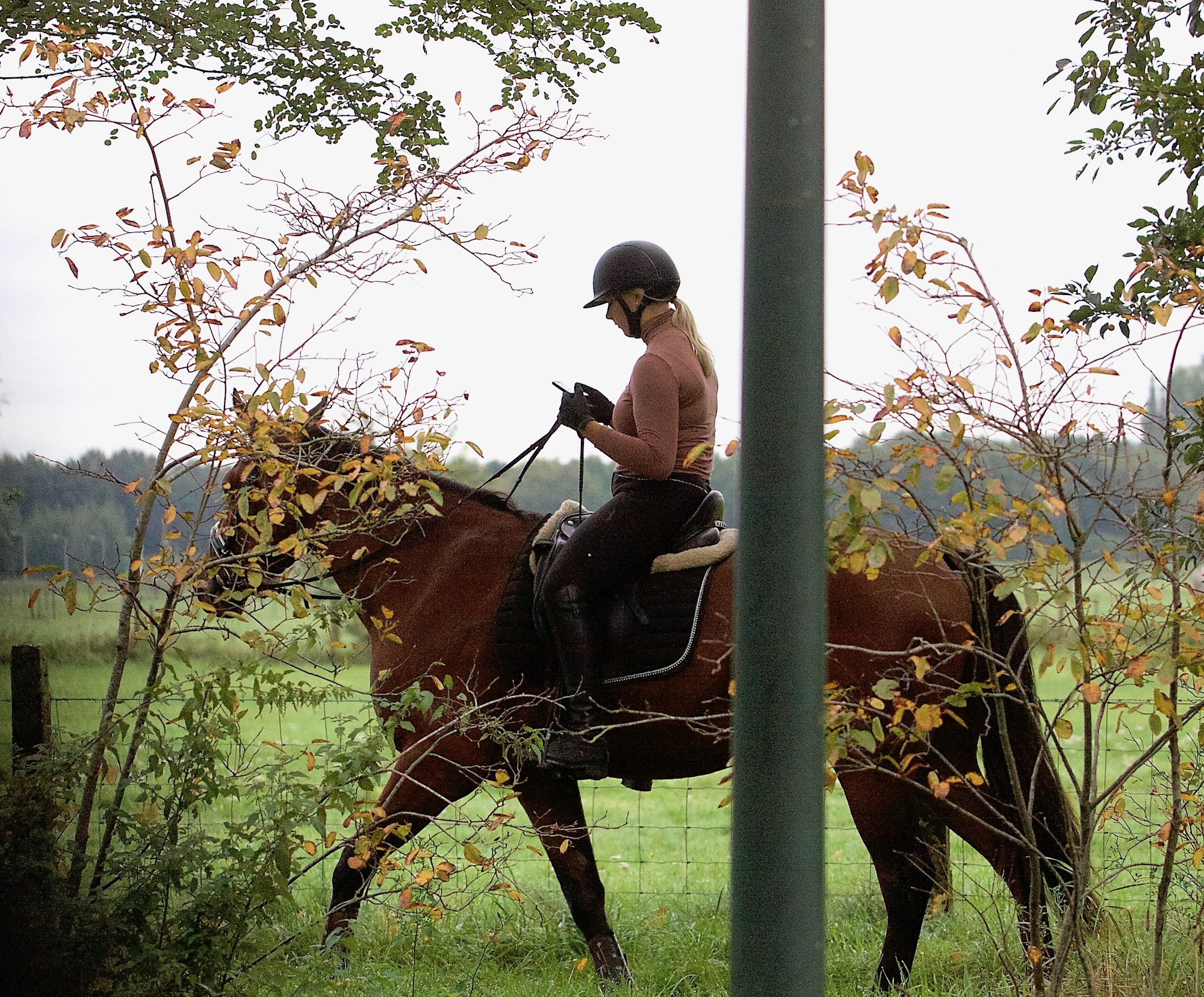 Ze kan zich er met veel moeite tussendoor wurmen, tussen het gehufter door.