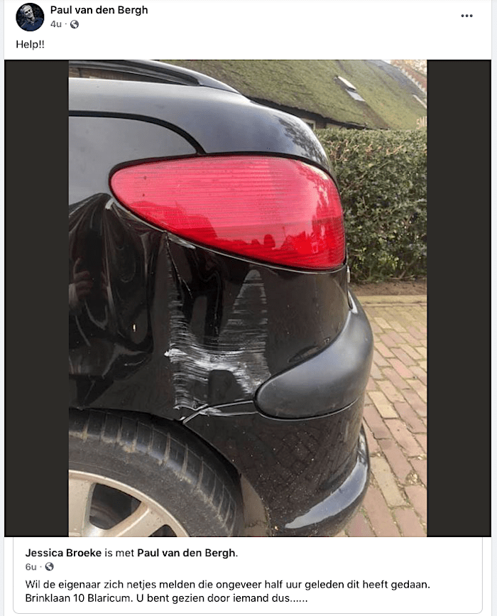 Bestuurder wordt aangesproken, maar hij meent met gladde tong en lultekstje te kunnen blijven staan. Met natuurlijk de zo ontstellend zielige vraag of de aanspreker van de handhaving is.