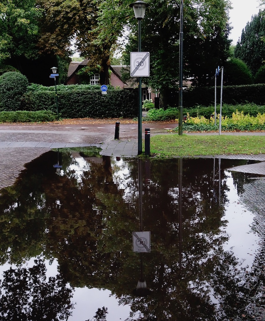 Statief – 5 sec. – + 5 comp. – ISO 640 – F1.4.Achterom – veelgebruikte aanrijroute voor de AH-parkeerplaats. Die is wel te bereiken via de Langeweg en de Burgemeester Heerschopweg.