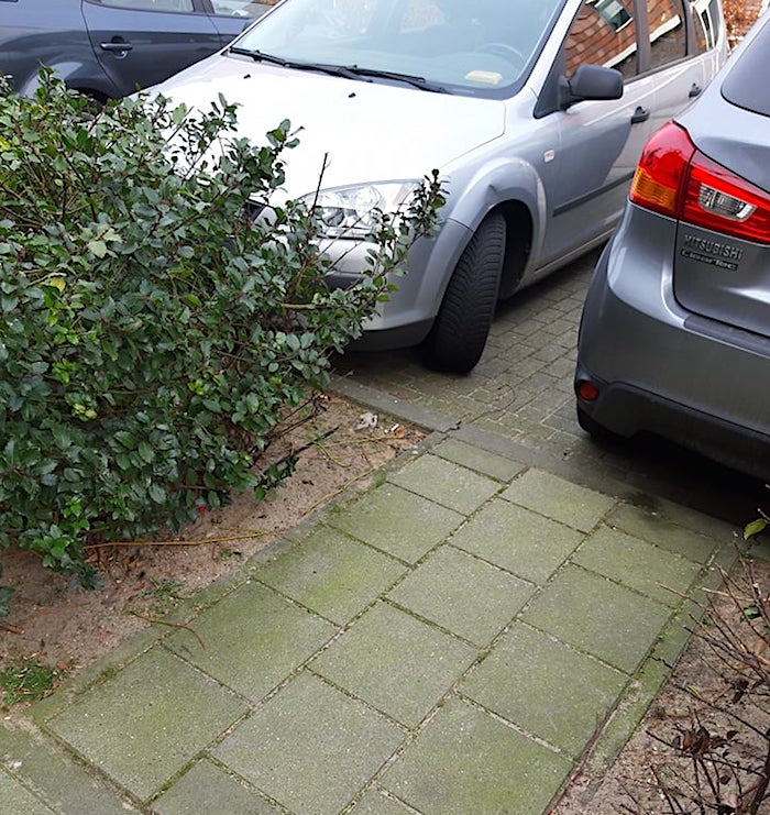 ‘Ten einde raad wil ik een absurde verkeerssituatie met u delen bij de parkeervakken aan de Weteringzijde van de Malbak Blaricum. Er zijn daar in de bosschages 2 doorgangen, welke echter niet parallel lopen de parkeervakken van de auto’s.