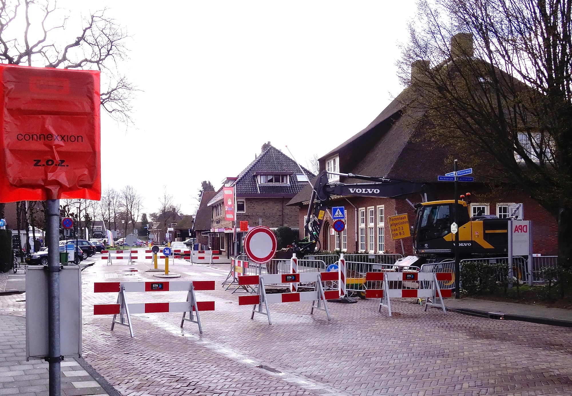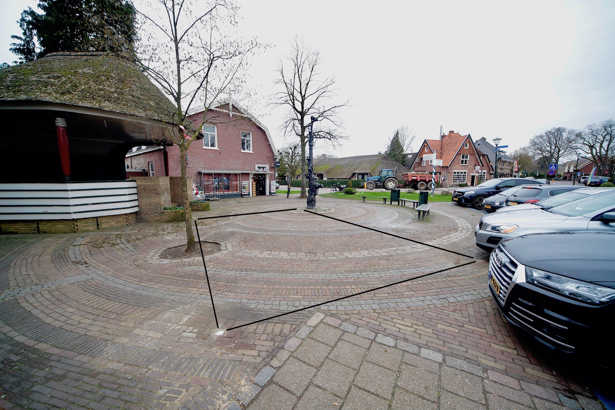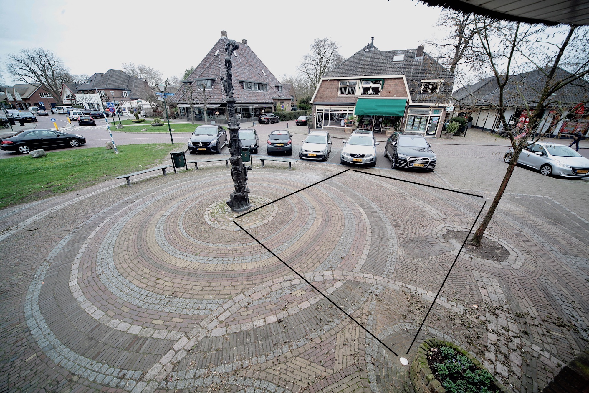 De marktplaats bij de muziektent is vandaag gemarkeerd met vier stalen schijfjes. De diverse marktkramen dienen binnen de lijnen tussen deze markeringen te worden geplaatst. (De ruimte is 40m2 voor alle activiteiten en werkzaamheden, conform de vergunningen.) Vraag is of met name bloemenman en groenteman daar blij mee zijn. Gall&Gall is dat, evenals diverse bevraagde passanten, in ieder geval niet. ‘Zo wordt de loop van en naar onze winkel compleet geblokkeerd.’ Hetgeen ook geldt voor het voorbijgaande voetgangersverkeer tussen Torenlaan en Dorpsstraat.