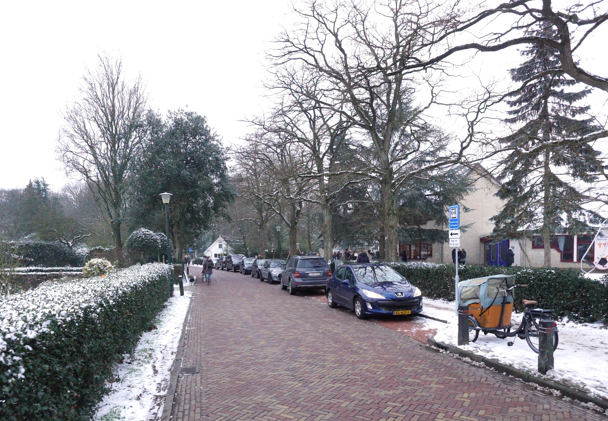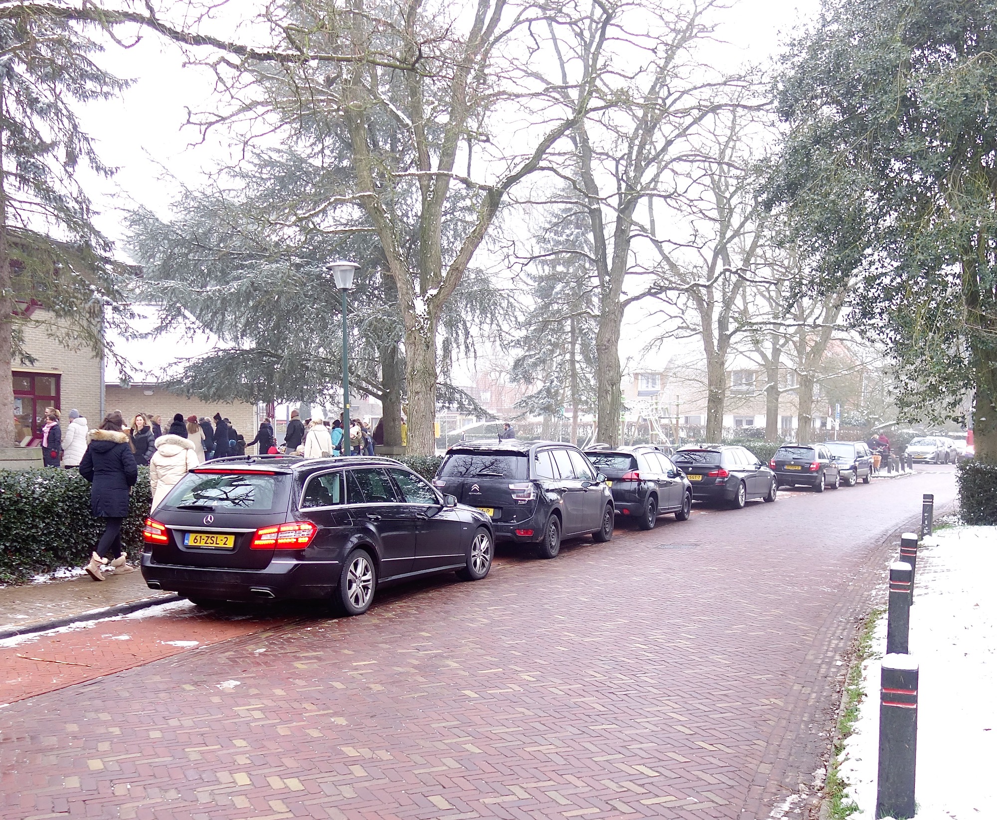 Eemnesserweg, Kiss + Ride-strook: het werkt dus niet. Als aan stront verslaafde vliegen komen vlak voordat de school (OBB) uitgaat, de auto’s aanrijden en worden klakkeloos op de strook geparkeerd. Motor uit, bestuurders/-sters eruit. Aanspreken levert in 15% van de gevallen een acceptabele, begripvolle of zelfs een dankbare reactie op, maar in 85% afkeuring, afwijzing, arrogantie, onbeschoftheid, belediging en zelfs agressie.