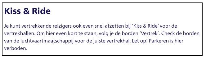 de situatie bij Schiphol. Let op ‘snel afzetten’ en ‘Parkeren is hier verboden’. Duidelijk toch?