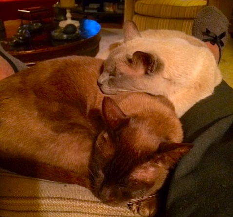 Op 23 maart j.l. rond 13.15 uur is onze lieve, prachtige, 12 jarige Burmese kater Poesjkin (onderste op de foto)