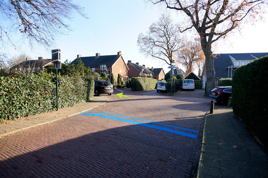 Het Achterom is verboden in te rijden (zie bord rechts) – toch maar strepen en borden om de blauwe zone aan te geven. Waarom?